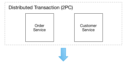 모놀리식 아키텍처에서 주요 사용했던 방식이 위의 다른 service layer 사이에서 발생되는 transaction 처리 부분을