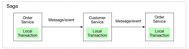 모놀리식 아키텍처에서 주요 사용했던 방식이 위의 다른 service layer 사이에서 발생되는 transaction 처리 부분을